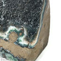 This neat Black Amethyst Cut Base has a very fine, powdery druse texture which makes it sparkle like glitter. Would be best displayed under natural light or near a light source.