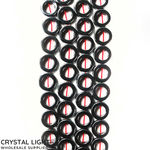 Sold by the strand, which measure to approximately 40cm. A 6mm round bead can fit inside the donut.