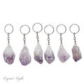 Each is Unique, you will recieve one similar to the picture provided. A Natural Amethyst point which has been fitted to a keychain. Dimensions above are averaged for crystal only, total average length is 10cm.