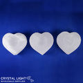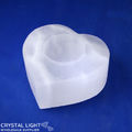 Selenite carved into a heart with a cavity to hold a Tealight Candle. Sides are polished.