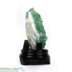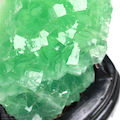 This Green Fluorite Specimen sits on its own custom wooden stand and has prominent cube growths. Specimen is loose from stand.