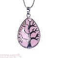 Rose Quartz Tree Of Life Teardrop Pendant