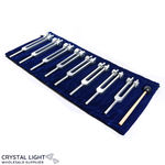 Tuning forks are used for healing meditation and allignment. Tuning forks can help contribute to the recalibration of chakras, and helps to release negative tension in the mind body and soul.