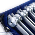 Set also includes a polishing cloth, a navy velvet drawstring case and mallet.