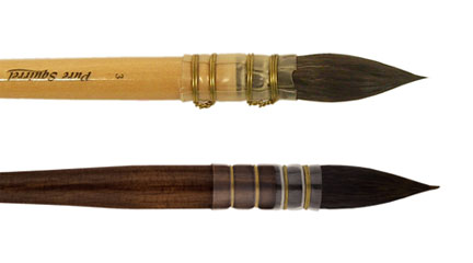Natural Hair contains microscopic ridges along its length, which helps to hold a greater amount of watercolour paint. The more expensive hair types also have a 'spring' that returns the brush to its natural shape and in the round versions, maintain a superb point for years.